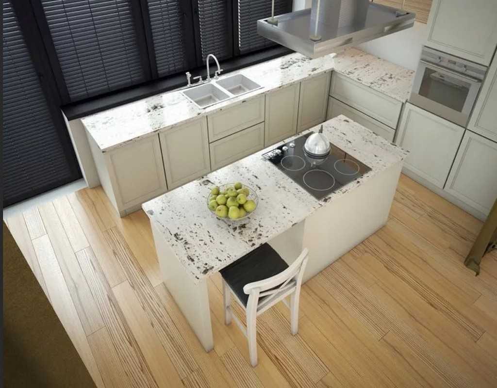 Островная планировка понравится владельцам больших кухонь или помещений, где зона для приготовления пищи совмещена с гостиной. В просторном интерьере такой вариант выглядит достаточно оригинально и практично.