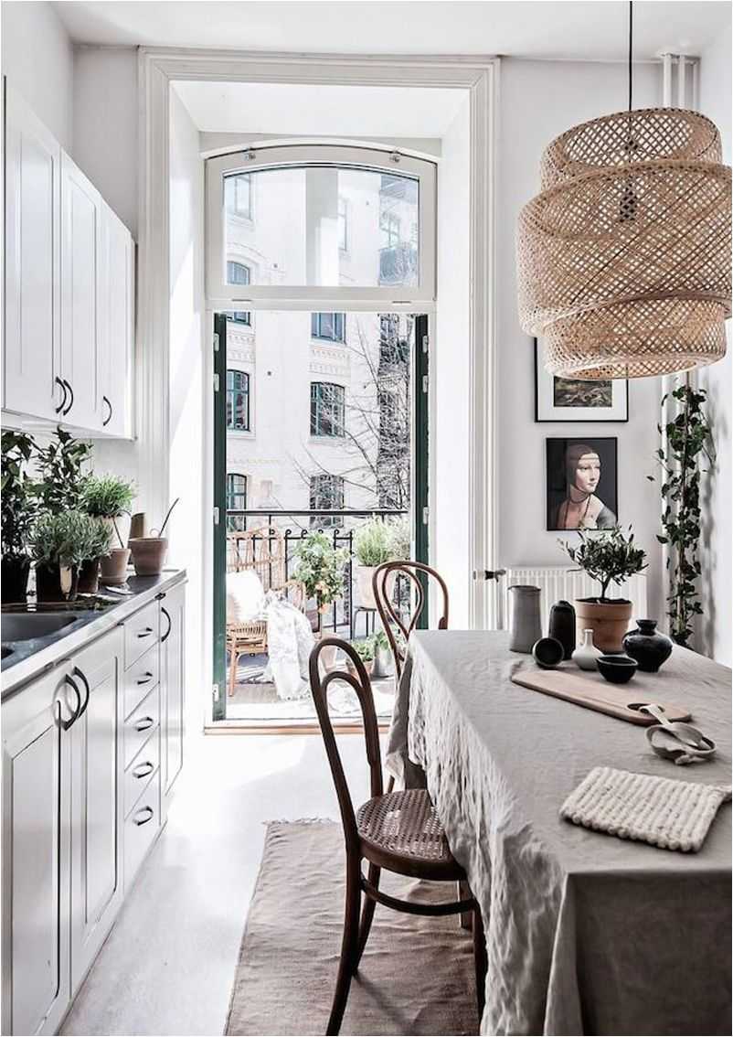 Скандинавский стиль — самый популярный у дизайнеров при планировке маленьких кухонь. В тренде простота форм и цветов; практически «стерильные» светлые оттенки стен и мебели; встраиваемая единой «стеной» мебель и мн.др. Никаких излишков — поверхности ровные, однотонные, без орнамента и глянца. Приветствуется нарочито грубоватый текстиль и сложное многоступенчатое освещение (по-разному направленный свет).
