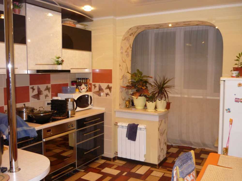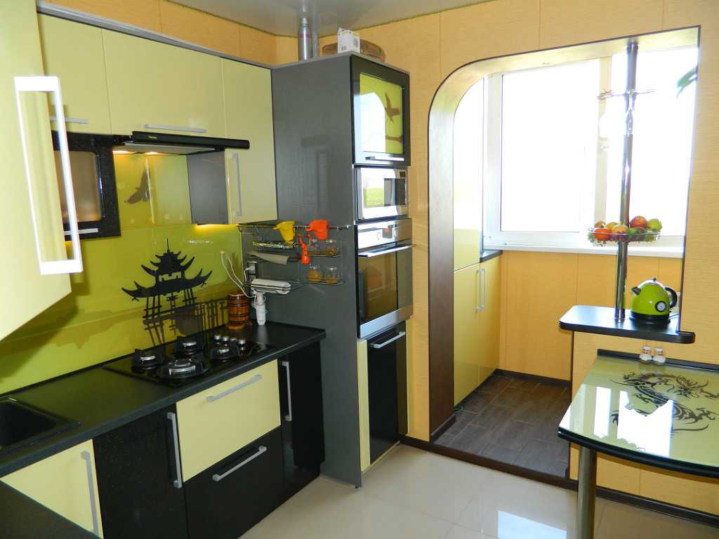 Перед владельцами хрущевок часто встает проблема, как сделать кухню площадью 6 кв. метров наиболее функциональной и визуально увеличить ее площадь. Для решения этой задачи часто используют полезную площадь балкона, соединяя его с кухней арочным проемом: там хранят кухонную технику и утварь. Такая перепланировка сразу наполнит кухню светом. А размещение на балконе крупной бытовой техники позволит разгрузить рабочую площадь небольшой кухни.