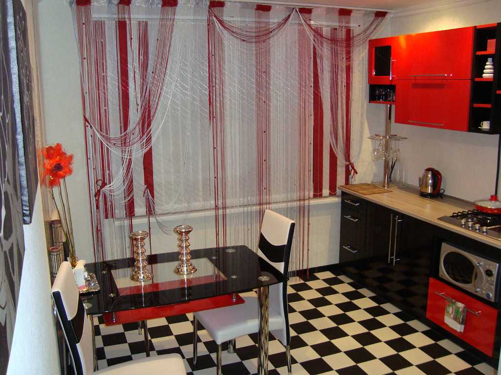 Кухня в красно-черных тонах — классический вариант обустройства интерьера. Чтобы помещение не выглядело слишком мрачно и гнетуще, его обязательно стоит разбавить нейтральными оттенками: белым, бежевым, светло-серым, коричневым.