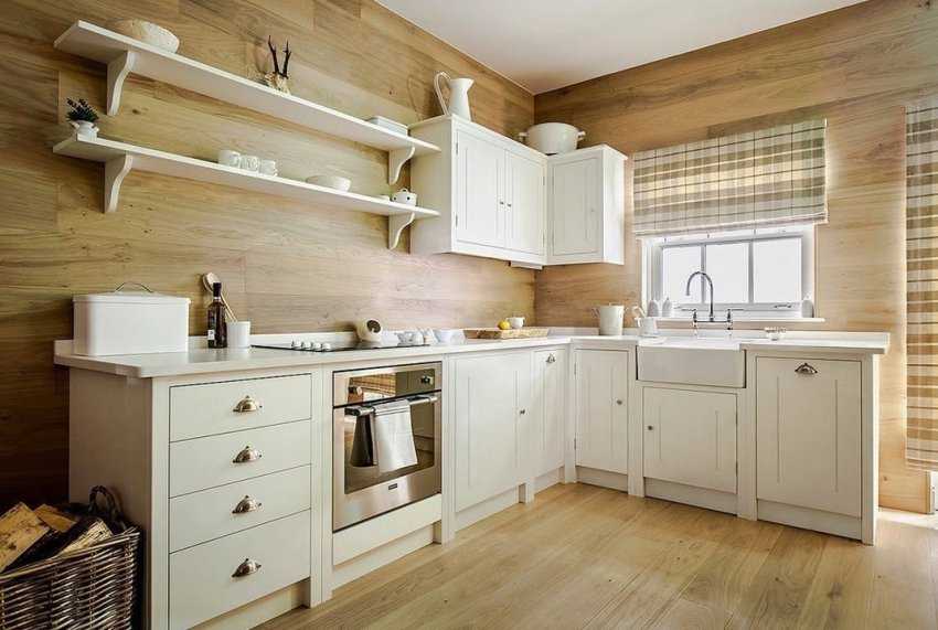 Самая дешевая однотонная вагонка словно создана для оформления кухни в стиле прованс