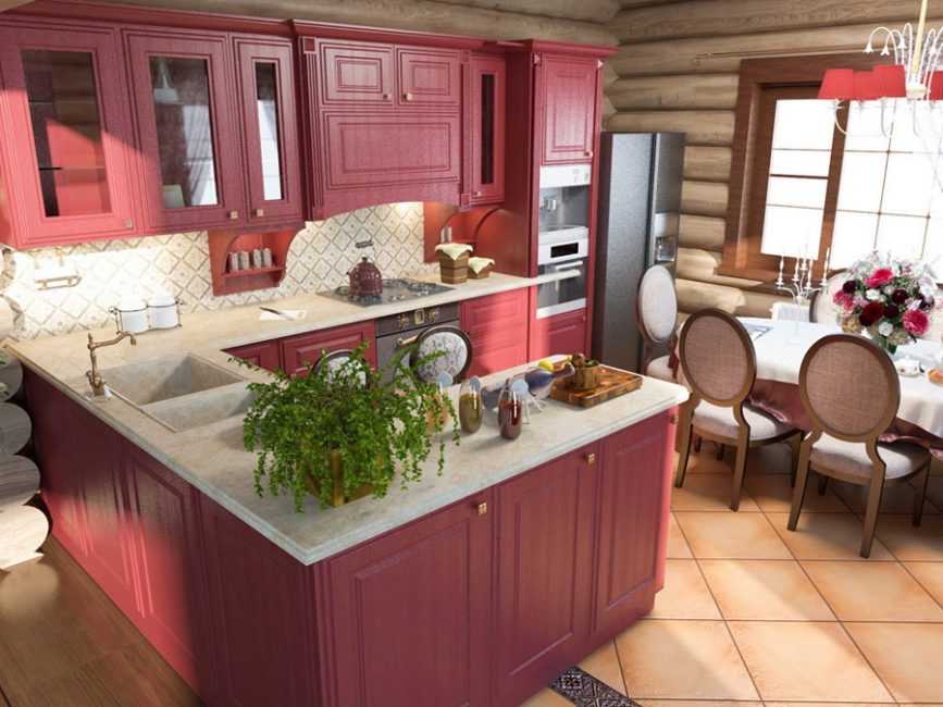 В просторной кухне заполнение трех стен не будет выглядеть давяще при грамотной расстановке, подборе цветовой гаммы и стиля помещения.