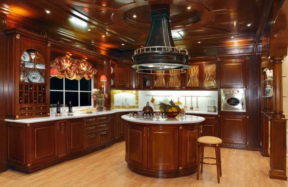 У многих просторных кухонь компоновка оборудования и гарнитура может быть произвольной: