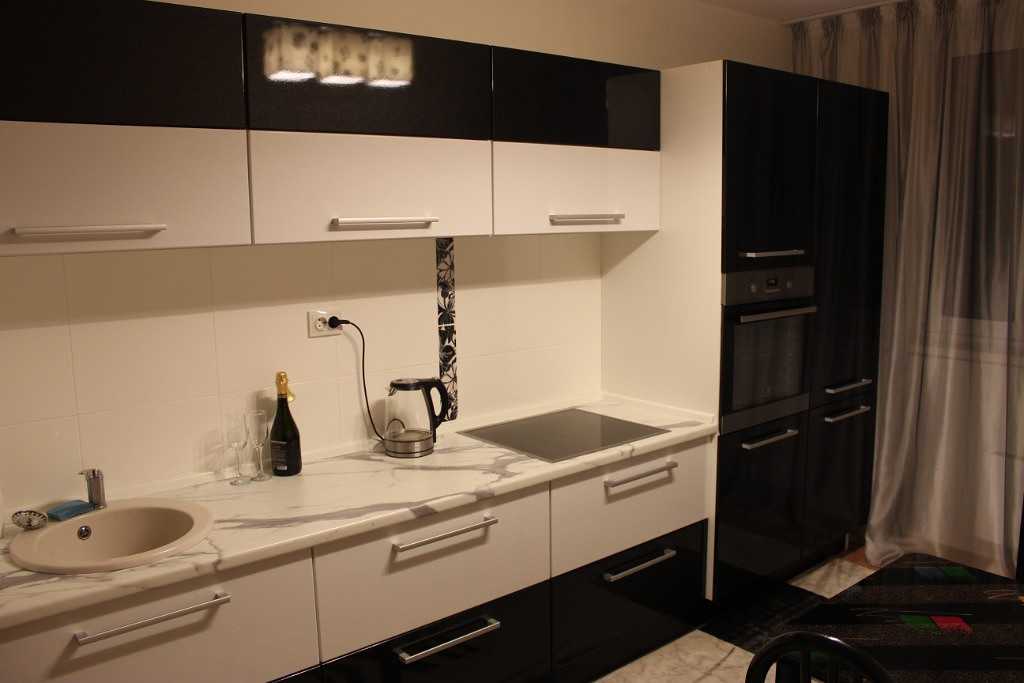 Черный глянец смотрится гораздо богаче и эффектнее матовых аналогов. Зеркальные фасады необыкновенно отражаются, дополняют пространство загадочной глубиной.