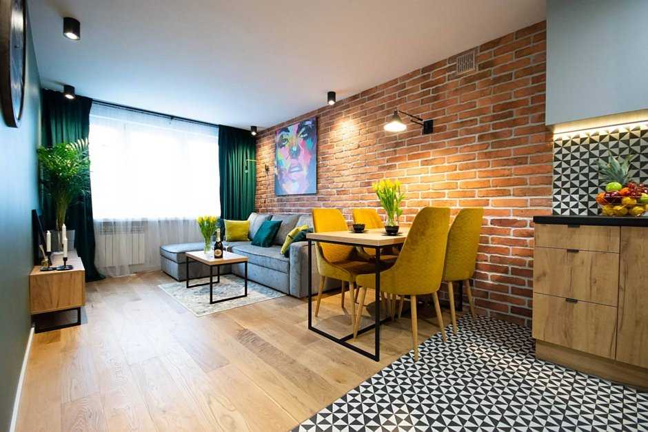 Лучше избегать стен с окнами или дверьми, тогда будет проще добиться реалистичного эффекта кирпичной стены. Если обои дополнительно подсвечиваются, они станут оригинальным декоративным элементом интерьера. Кирпичное панно будет хорошо смотреться на стене небольшой комнаты в многоэтажном доме. Возможности этого материала или обоев с таким рисунком практически безграничны.