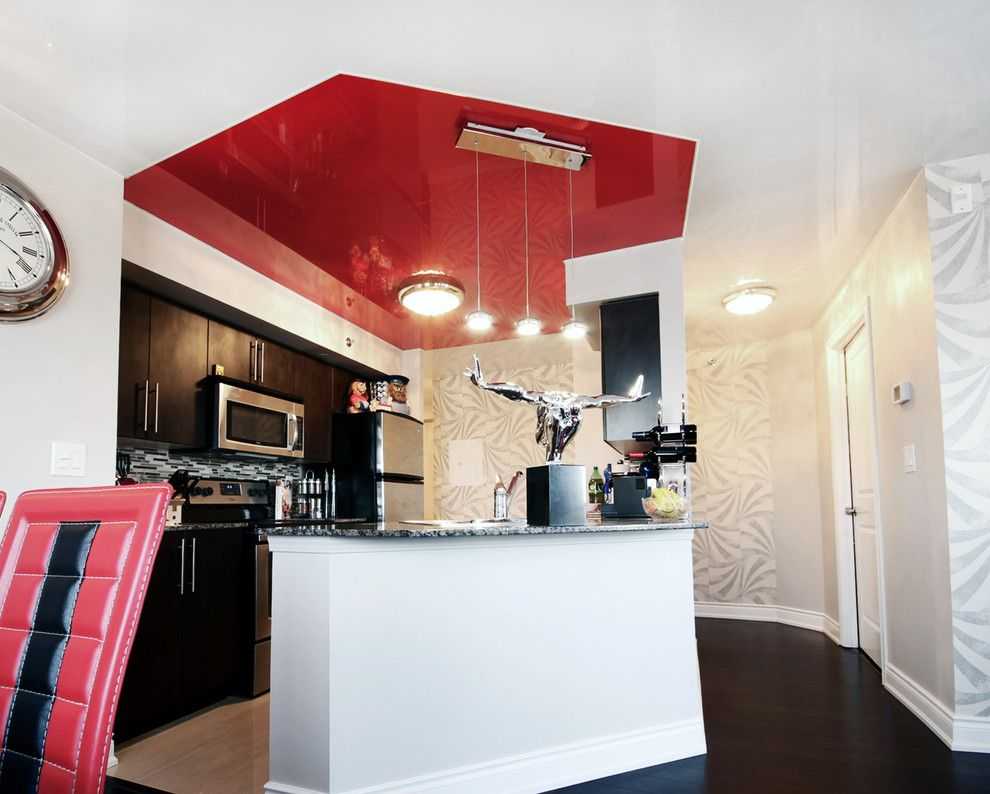 Глянцевые натяжные потолки — лучший выбор для кухни