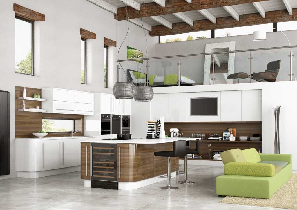 Пол кухонного пространства должен выдерживать постоянное механическое воздействие, повышенную влажность и быть удобным в уборке. Как правило, используются керамика, плитка или натуральный камень, если бюджет хозяев позволяет. Однако укладка дощатого пола вполне допускается, например, в стиле кантри или лофт.