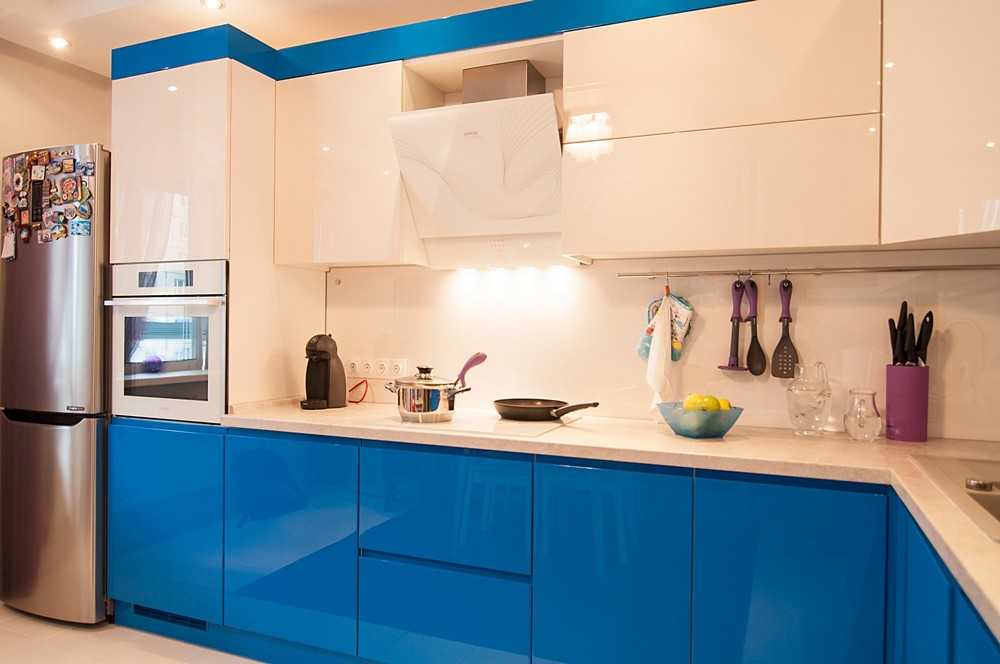 Если бело-синяя кухня или же ее сине-желтоый вариант, а также их другие сочетания подобраны правильно, у вас не возникнет проблем с оформлением пространства, а пребывание в помещении станет максимально уютным