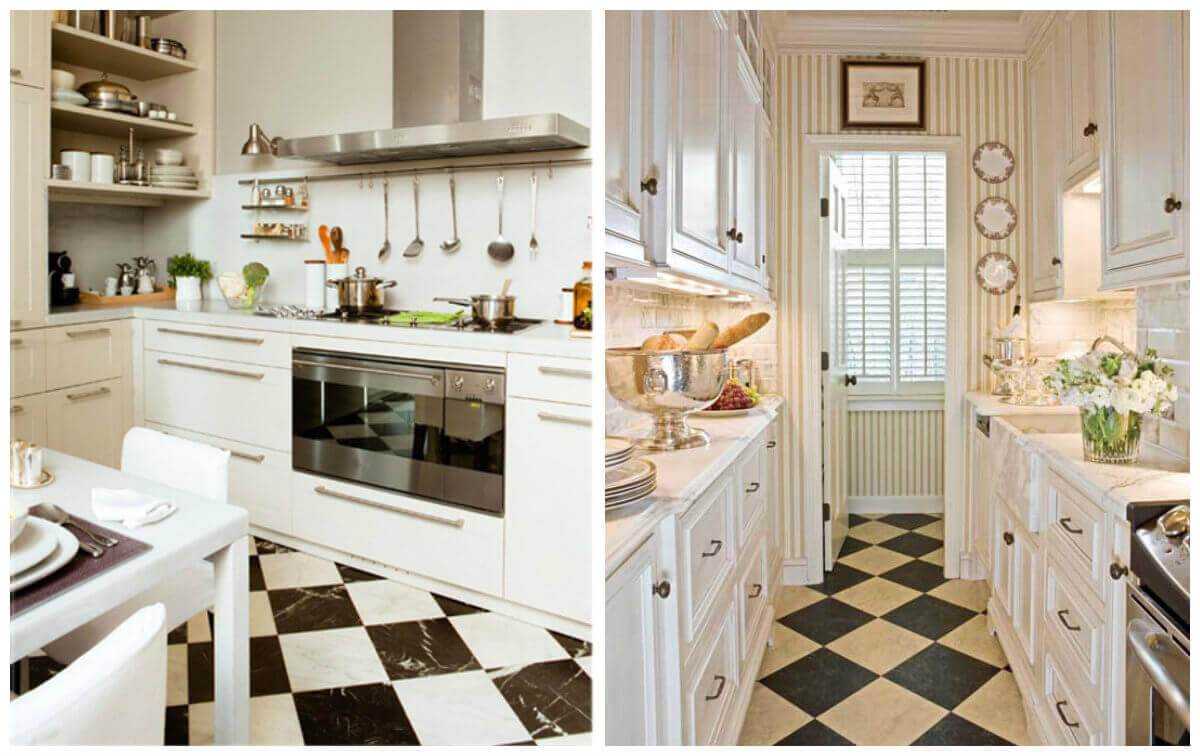 Нужно понимать, что дизайн любой маленькой кухни, без применения современных идей и подходов, изначально обречен на провал. В особой степени это касается выбора материала и рисунка для пола.Один неверный шаг, и вы сделаете и без того небольшое помещение визуально еще меньшим.