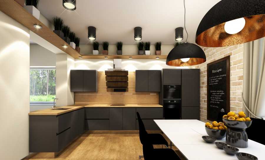 Бетон тоже пористый материал и в зависимости от плотности может сильно впитывать влагу. В список, чем можно отделать рабочую зону кухни лофт, входят: