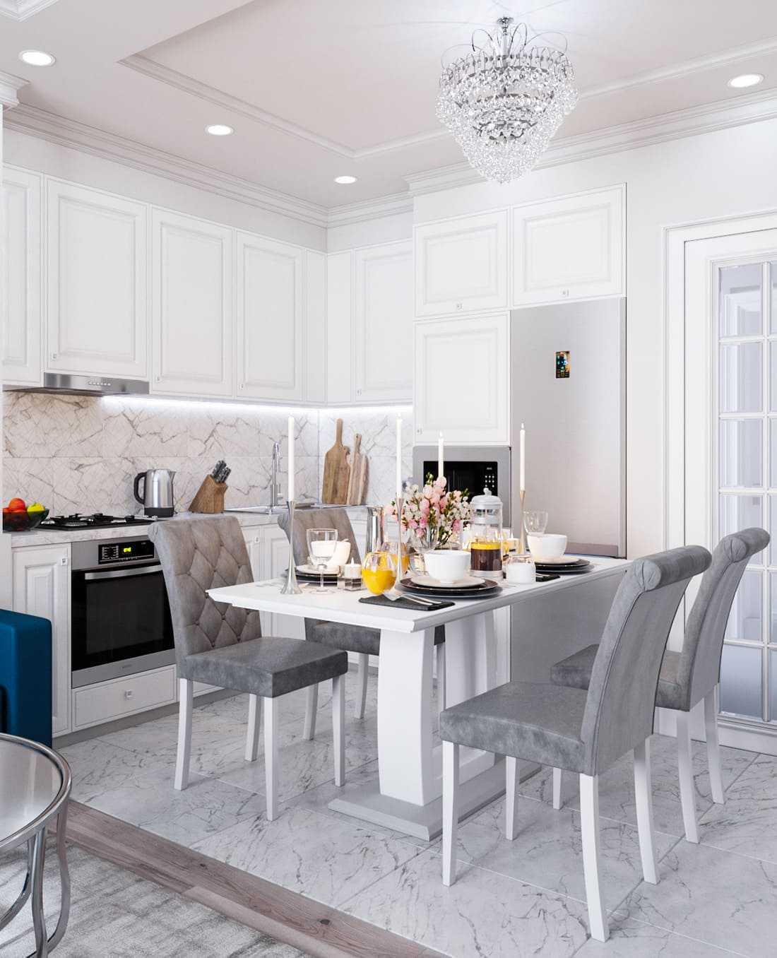 Кухня в стиле рококо или ампир не будет выглядеть так изысканно, если в ней нет оттенков белого.