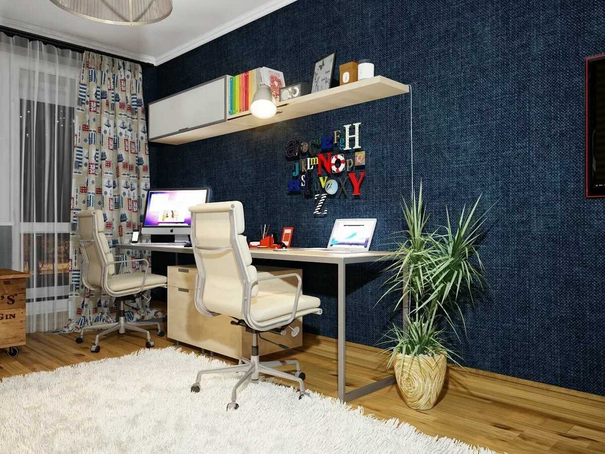 Рабочее пространство можно разделить и с помощью цвета. Лучше выбрать контрастные оттенки покрытий для стен. Интересным решением будет и яркий ковер.