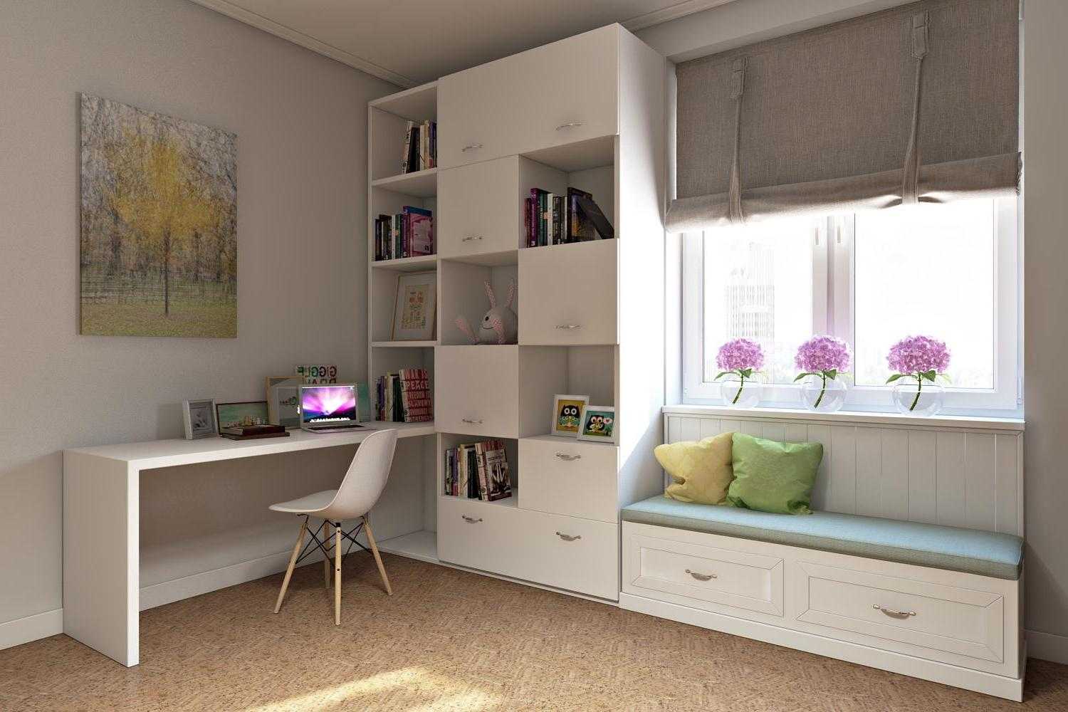 - Если в комнате есть эркер, то туда можно поставить круглый стол для компьютера, а также шкаф. Освещение можно регулировать с помощью жалюзи.