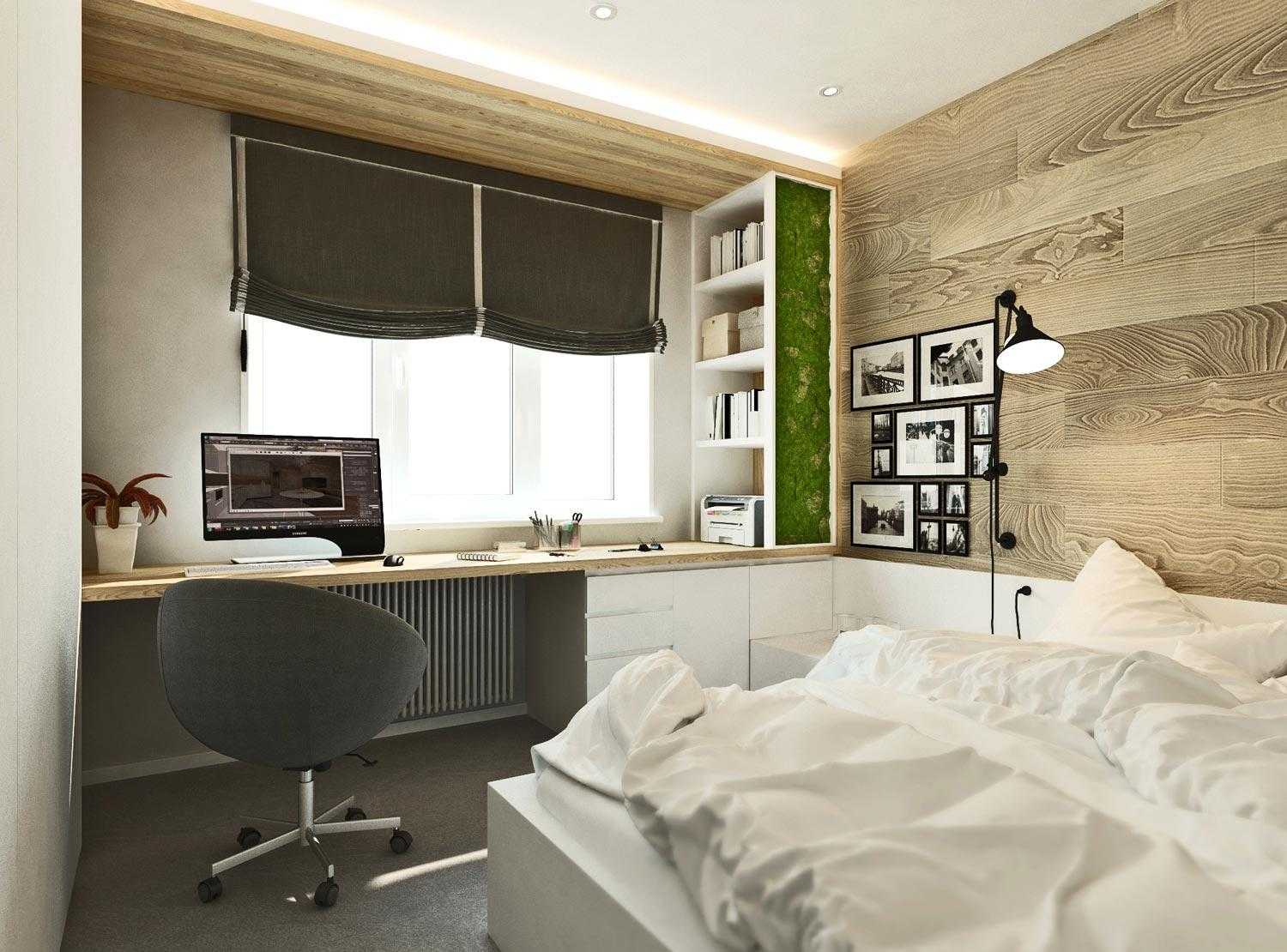 При возможности, постарайтесь сделать рабочее место отдельно от спальни. Тогда Ваша техника будет накапливать меньше пыли и Вашему здоровью будет польза. В случае если Вы не можете этого сделать, установите перегородку. На изображении показан вариант использования лоджии как кабинета.