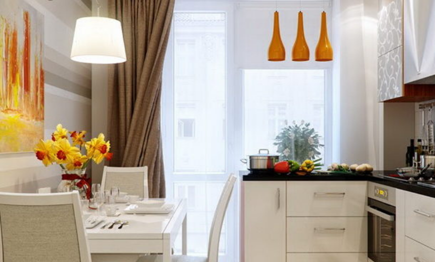 Cовместить кухню с лоджией (тоже хорошее решение, если есть такая возможность, при желании можно сделать барную стойку).