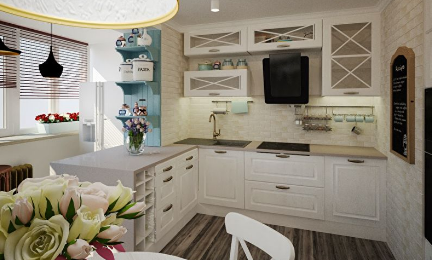 Данное направление также стремиться к натуральности, мягкой цветовой гамме. Сочетаются в нем компактность, элегантность и практичность. Линии плавные, мебель утонченная. Приветствуется наличие мелких деталей, узоров рисунков. Все выглядит уютно и по-домашнему.