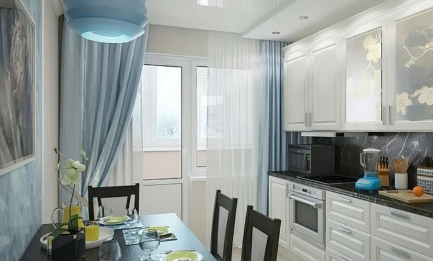 На фото — проект кухни площадью 9 кв. метров, объединенная с балконом.