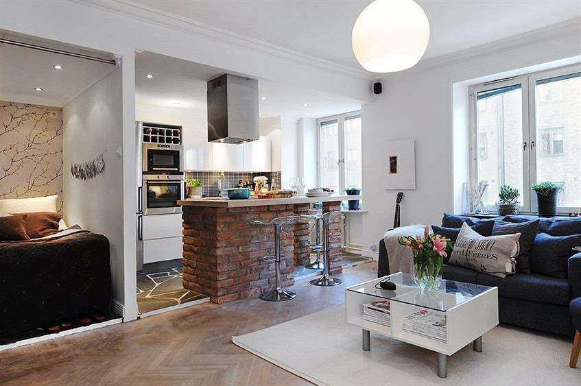 метров лучше смотрится минимальный набор мебели без лишних деталей.