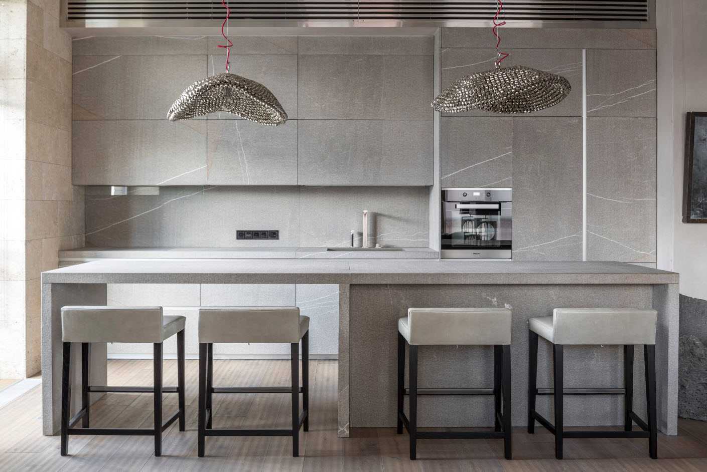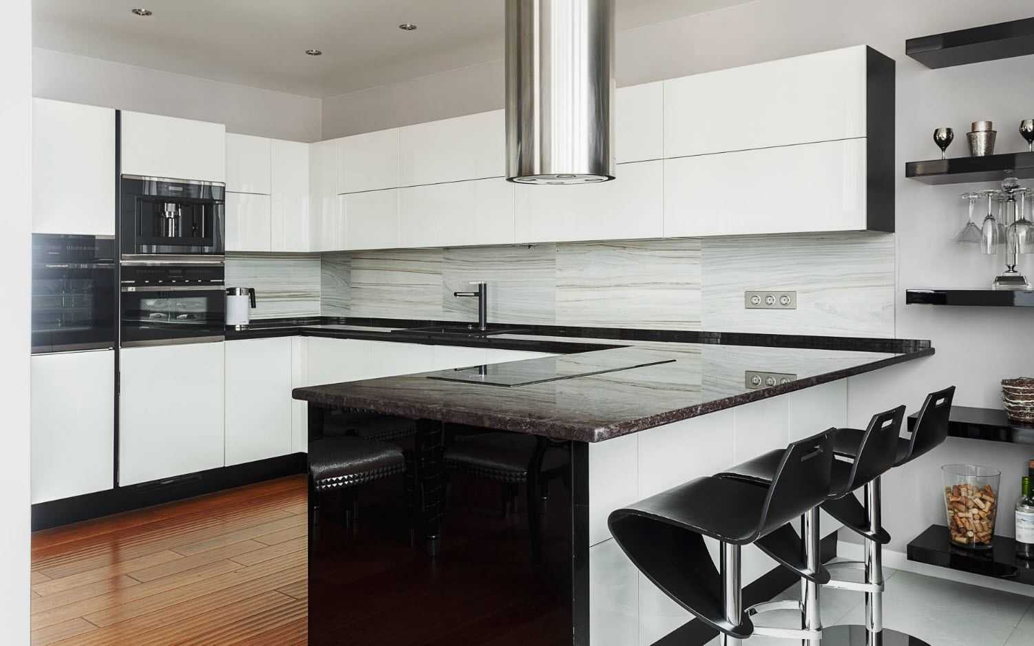 Что касается черного и бежевого, они также остаются очень востребованными для дизайнерских кухонных поверхностях на больших площадях. Данные расцветки идеально смотрятся как в комбинации между собой, так и с другими нейтральными цветами.