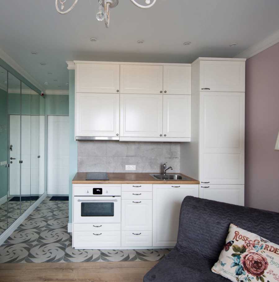 - квартирах-студиях — чтобы уменьшить площадь, занимаемую гарнитуром.