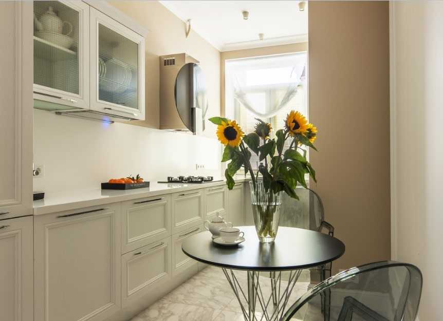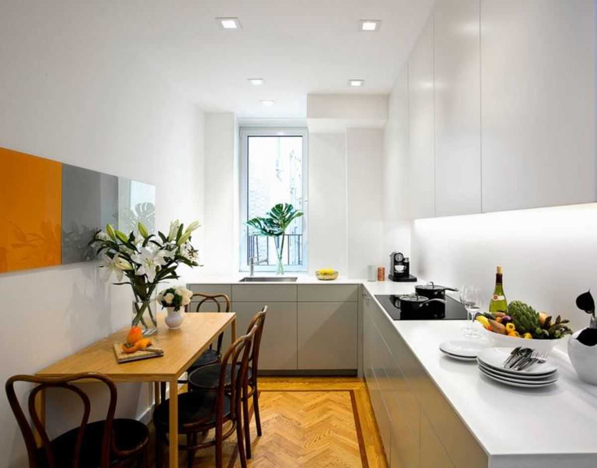 Несомненно, узкая кухня сама по себе довольно сложная в обустройстве. Но если она еще и слишком маленькая, то оформлять ее стоит с участием дизайнера. Самым простым решением в данном случае будет организация столовой зоны в соседней комнате. Конечно же, далеко не каждая квартира позволит поступить именно так. Поэтому, при наличии балкона можно организовать на нем столовую, но при этом объединив с ним кухню. Расширить пространство также можно за счет коридора. В любом случае, для каждой кухни подойдет индивидуальное решение.