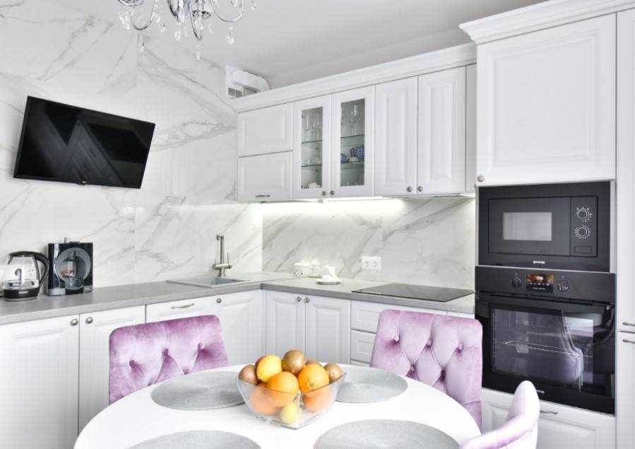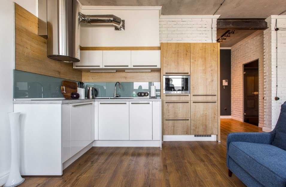 Совет! Если вы планируете создать модный дизайн маленькой кухни 2020, следует продумать функциональную роль углов. Мебельный ансамбль подбирают компактных размеров без громоздких декоративных элементов.