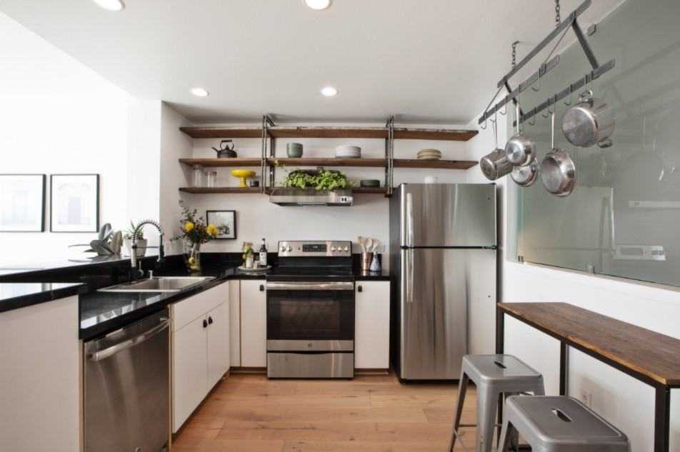 Линейное расположение кухни позволит сохранить больше свободного пространства
