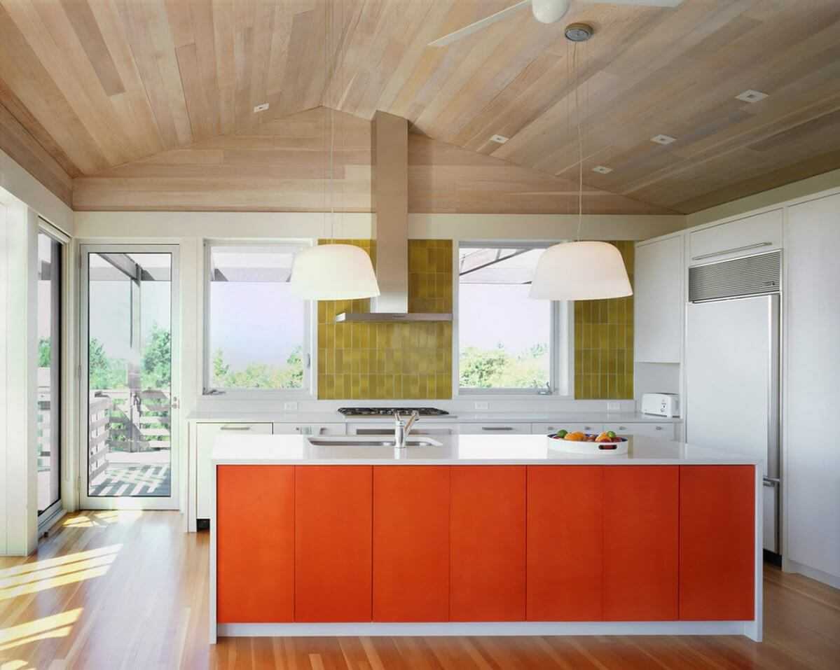 - Оранжевый оттенок за счет своей солнечности отлично подходит для кухонь, расположенных на северной стороне.