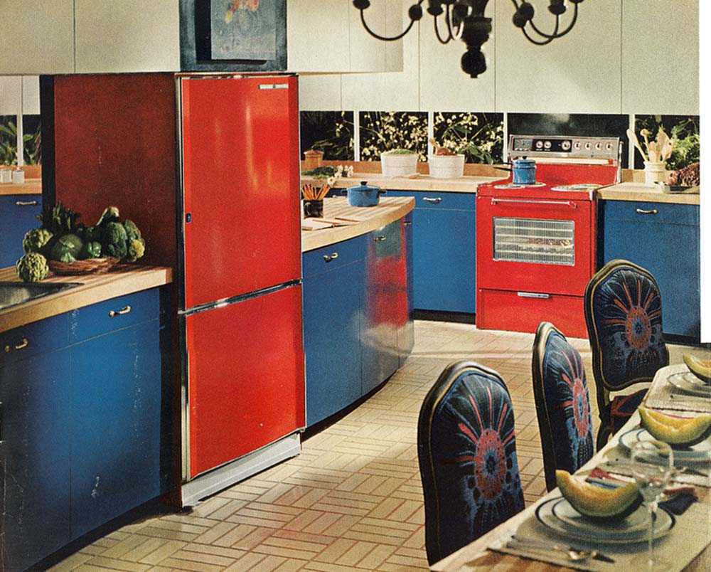 Причем центральное место на кухне в ретро-стиле занимает именно люстра. Однако никаких сложных, многоуровневых, вычурных моделей: только простая круглая или прозрачная форма на тонкой цепочке или даже шнурке. Правда, в более поздних случаях можно использовать яркие модели в виде звезды, цветка или абстрактной геометрической фигуры.