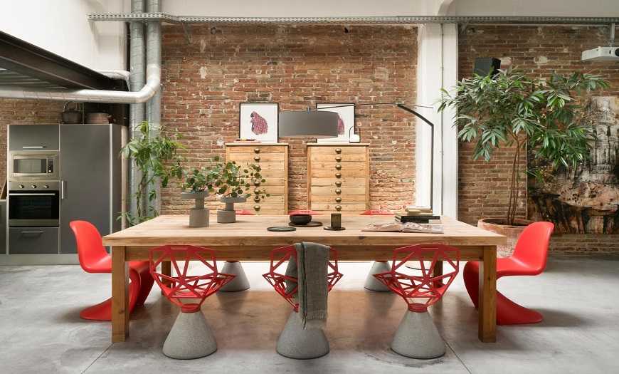 Вы не ошибетесь, если будете подбирать материал для помещения, делая акцент на сочетании современных материалов (стекло, сталь, хром) со старыми материалами и предметами (кирпичная кладка, бетонные стены, деревянный пол).