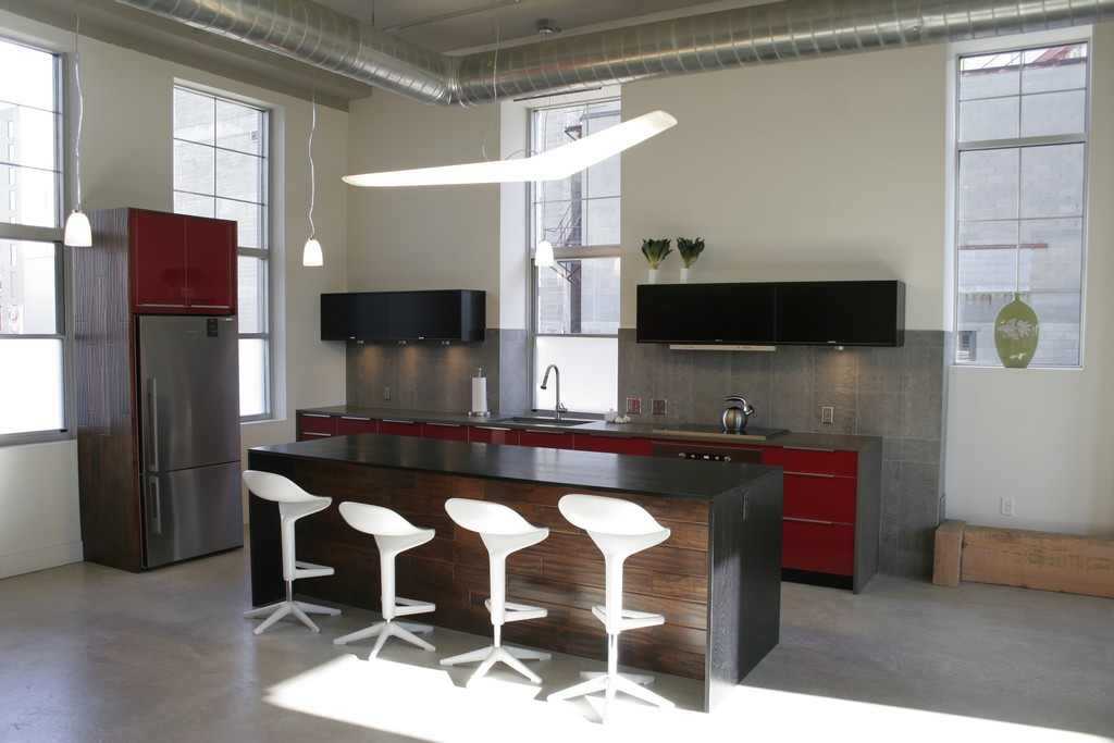 Отделка кухни в стиле лофт подходит для больших и маленьких кухонь.