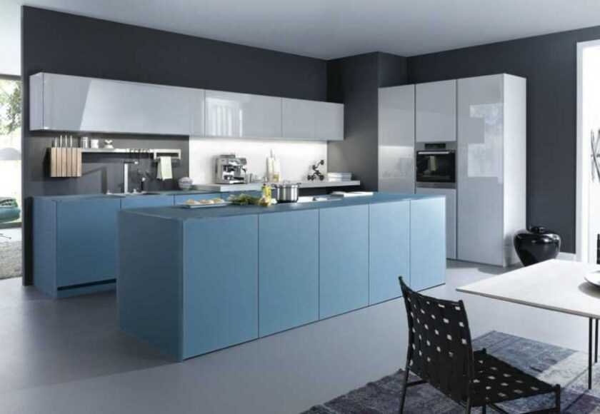 Здесь большая часть мебельной атрибутики будет сосредоточена в центральной части. В основном этого зона приготовления и употребления пищи. Система хранения располагается в угловой части помещения или возле боковой стены. Она позволяет вместить множество предметов кухонной утвари.