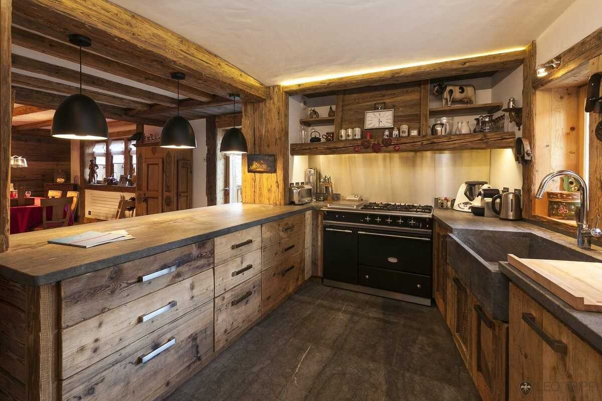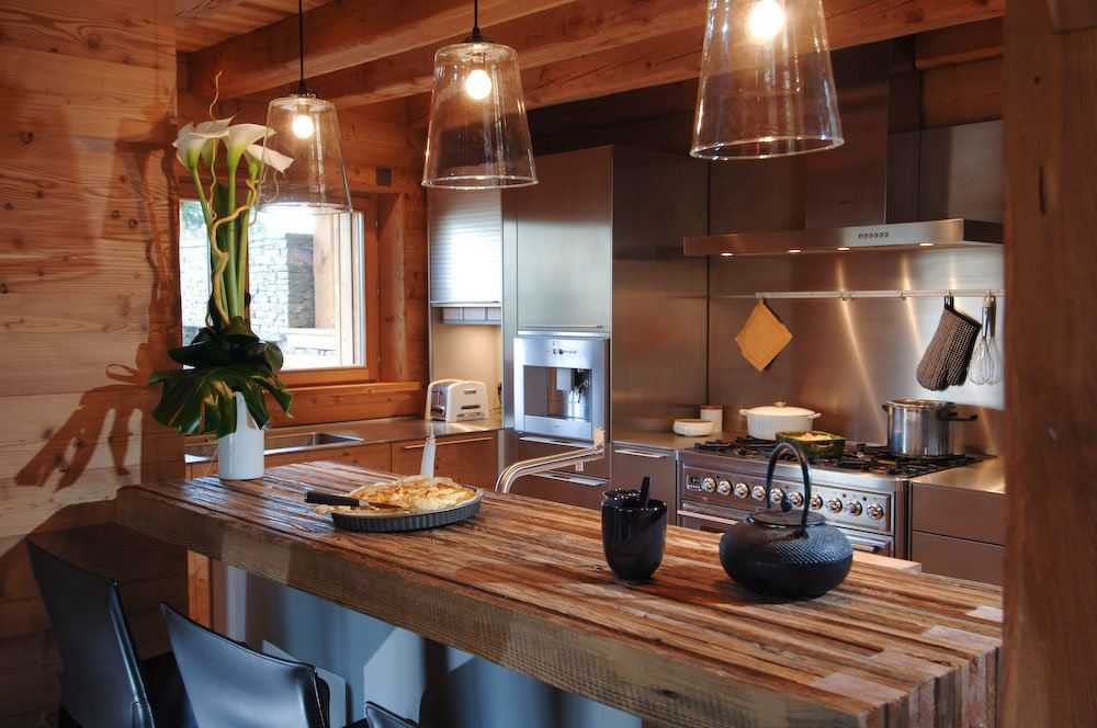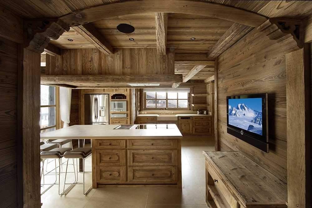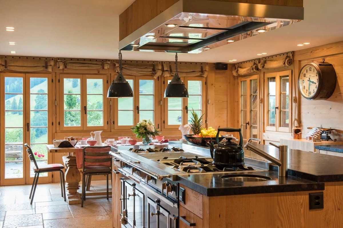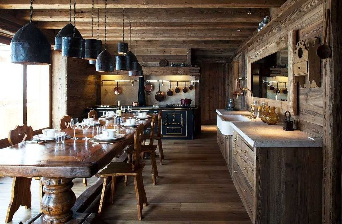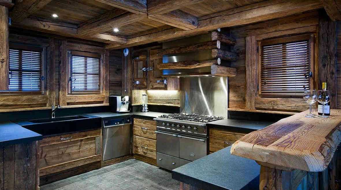Кухня Шале – это, как и в стиле кантри, большое количество натуральных материалов: