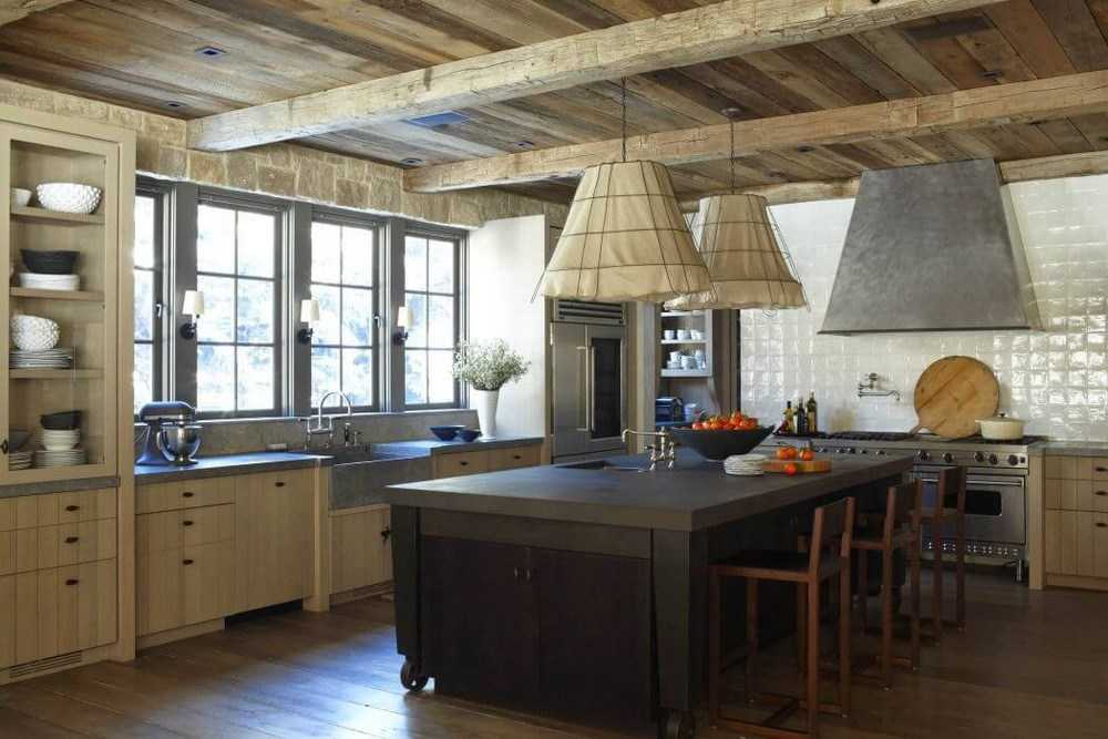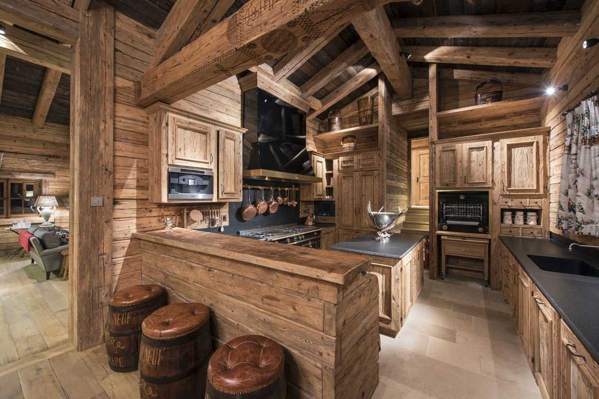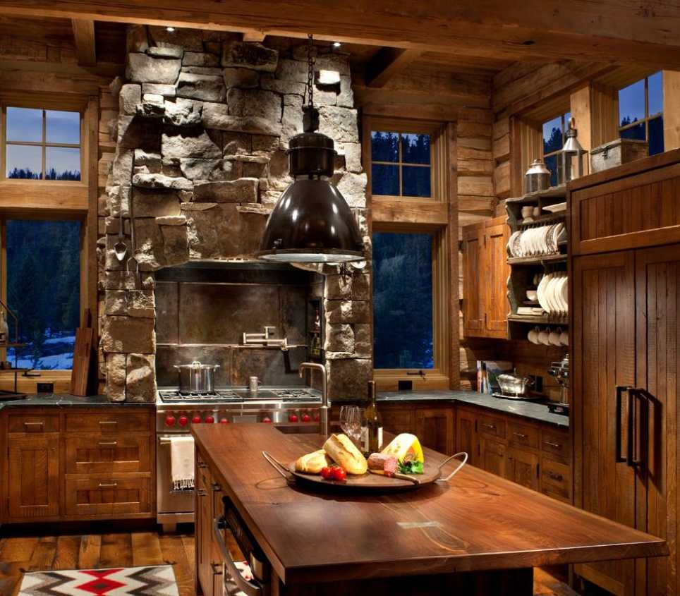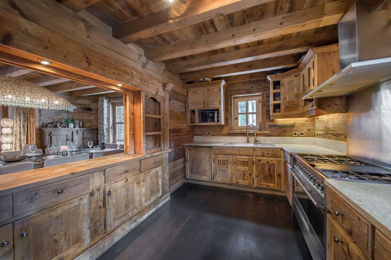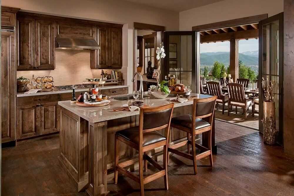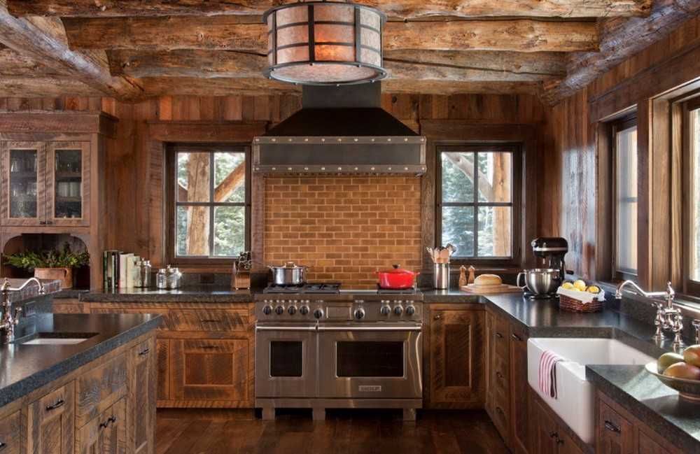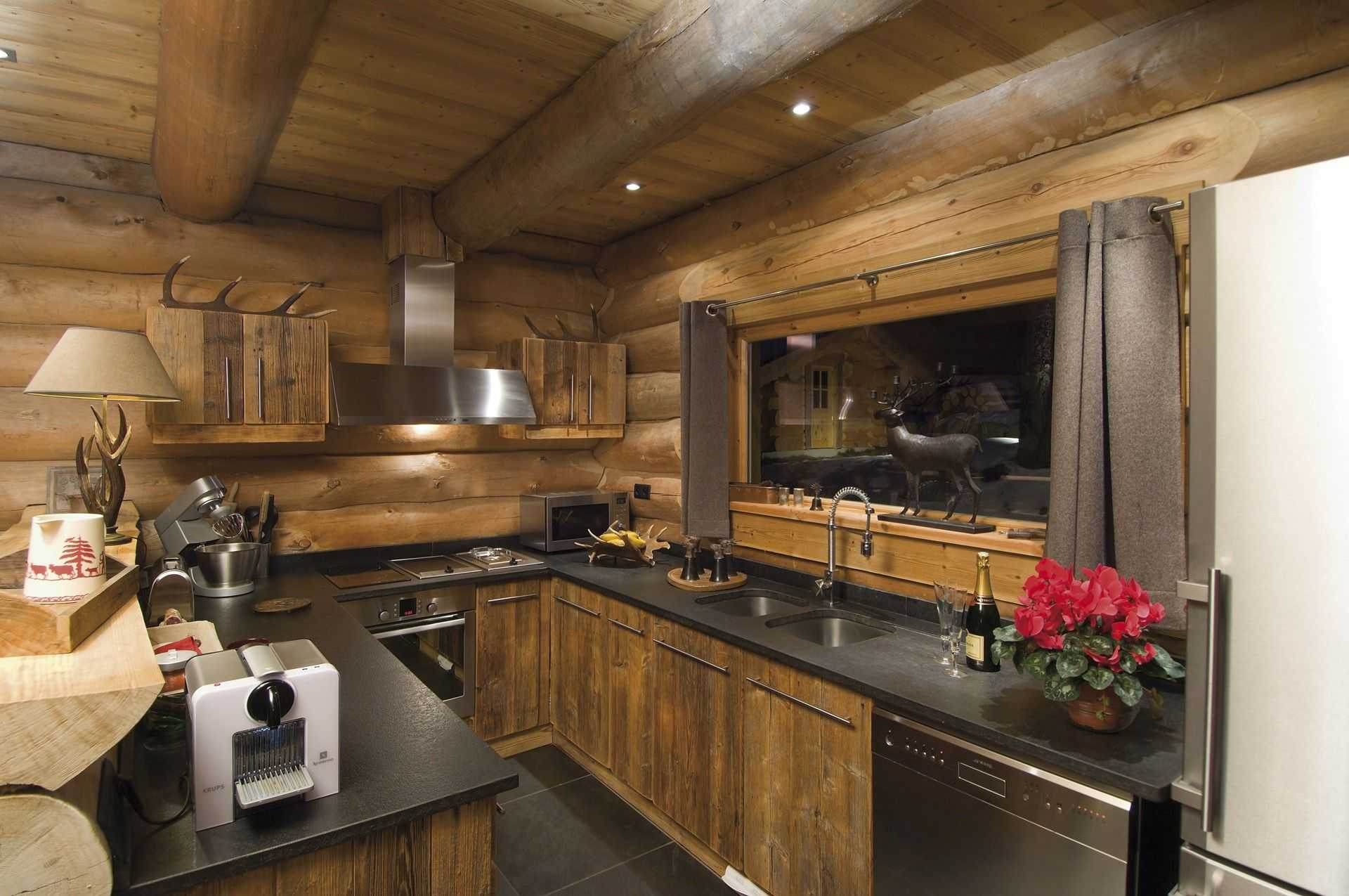 Кухня Шале – это, как и в стиле кантри, большое количество натуральных материалов: