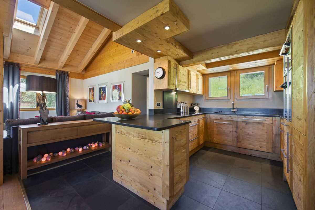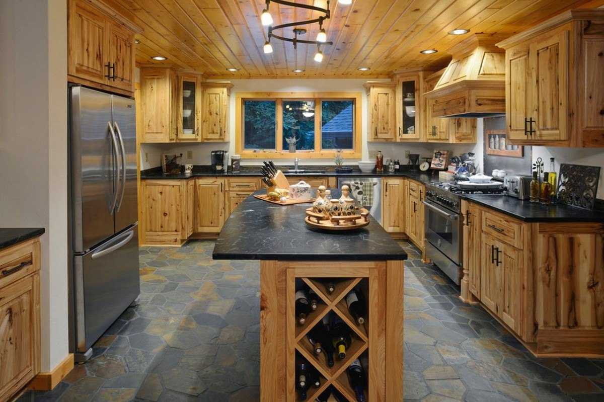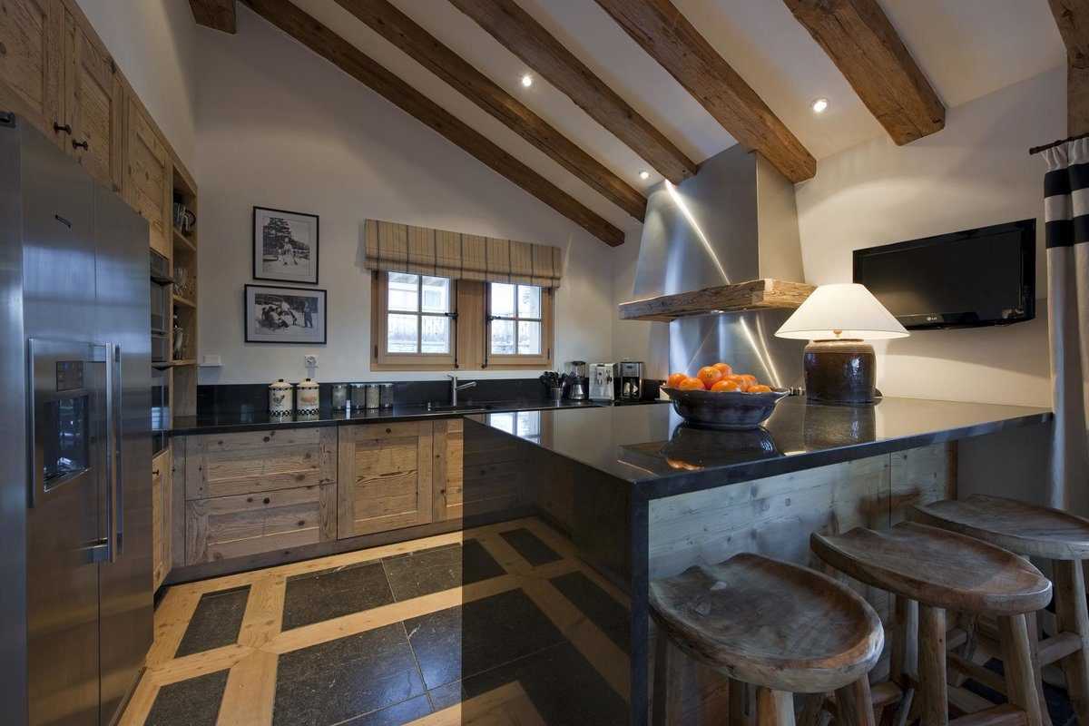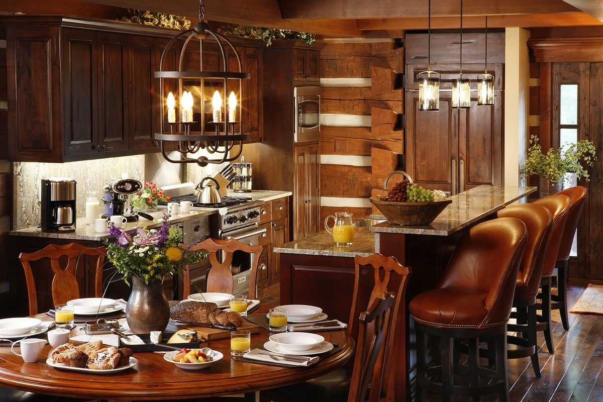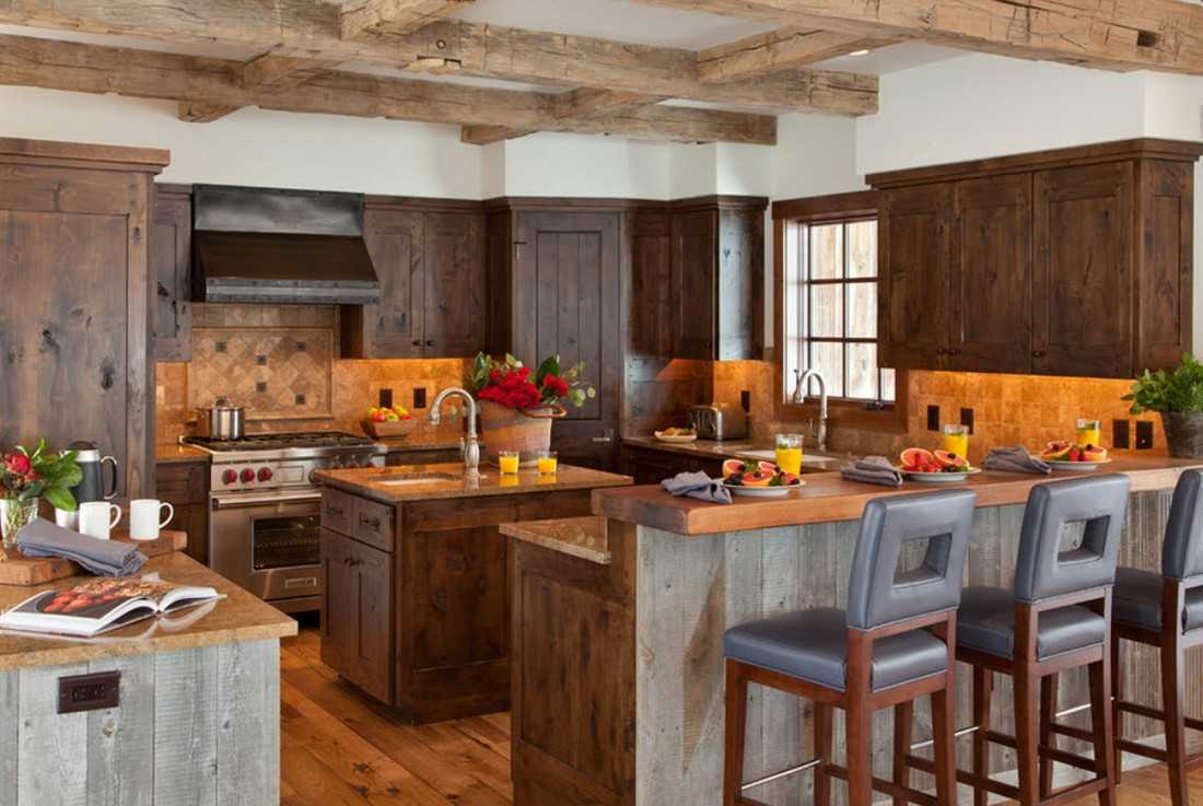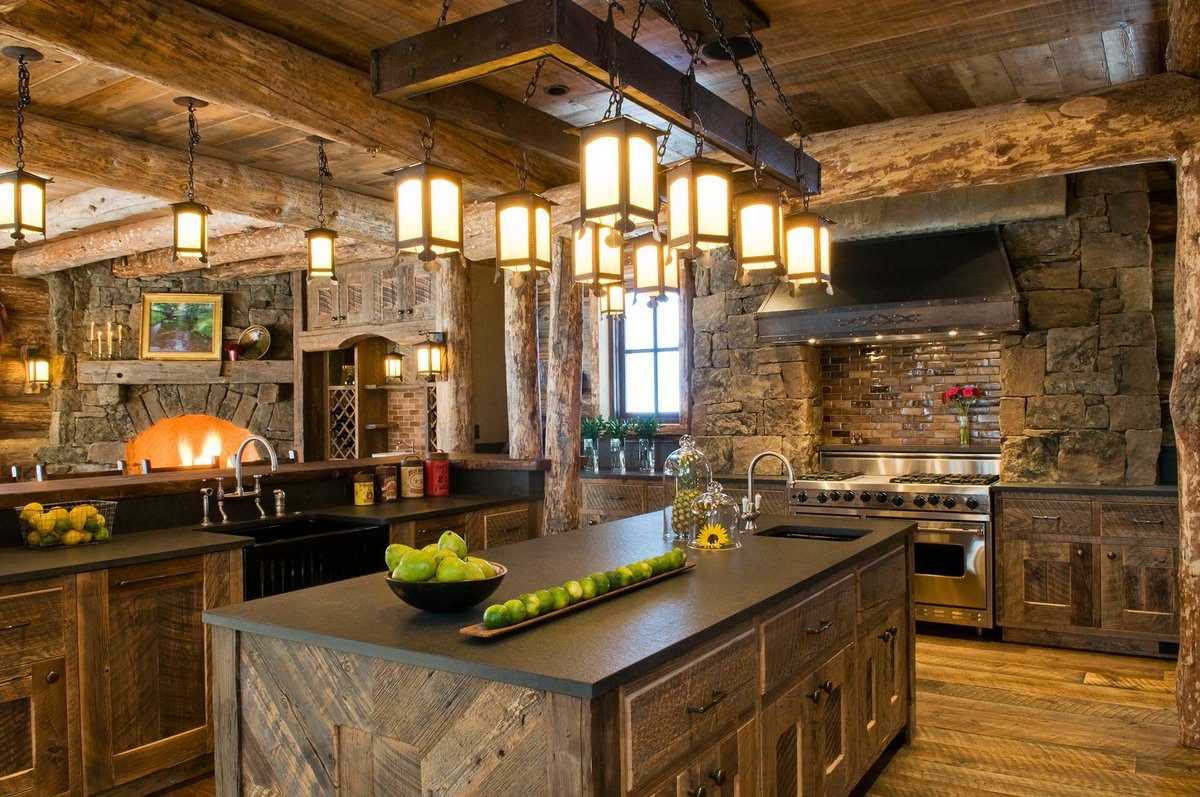 Кухня Шале – это, как и в стиле кантри, большое количество натуральных материалов: