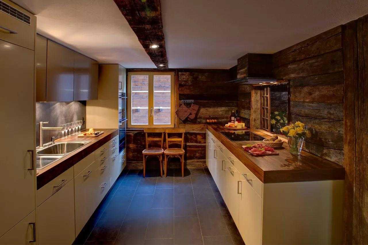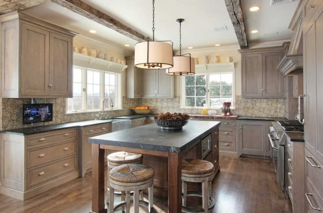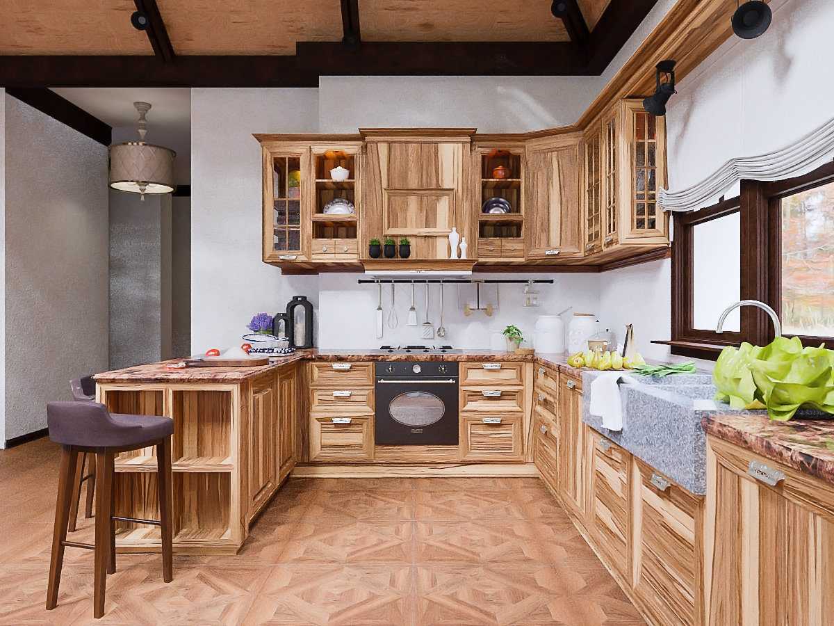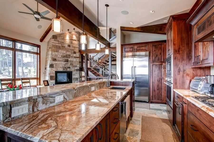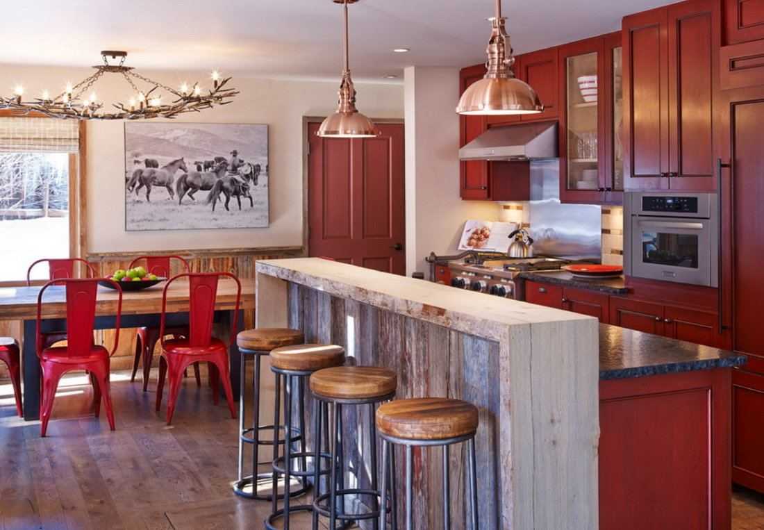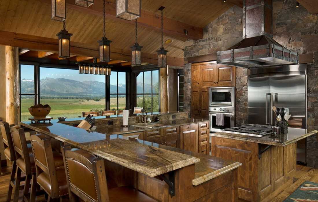 Кухня Шале – это, как и в стиле кантри, большое количество натуральных материалов: