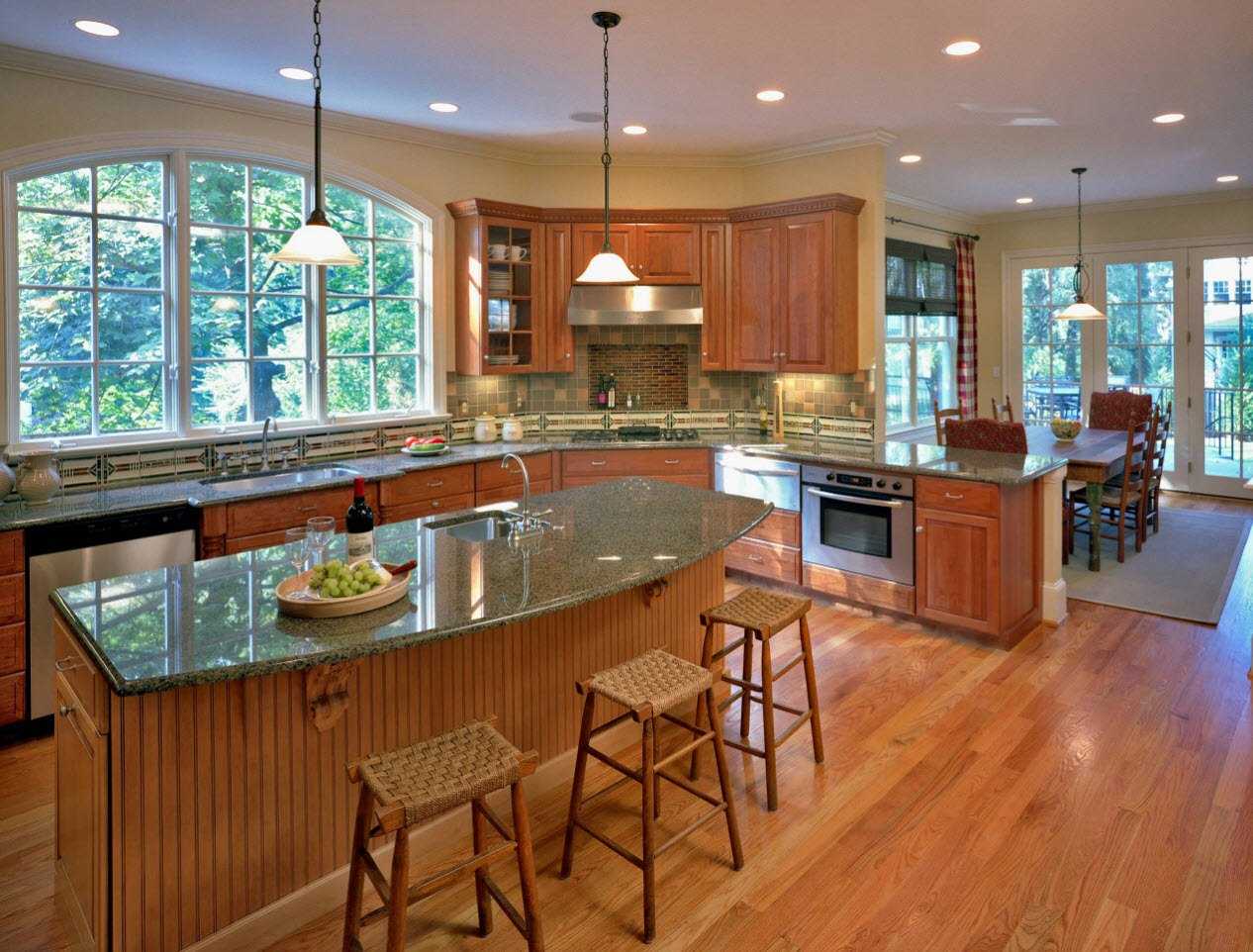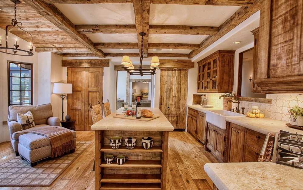 Кухонная мебель из массива обязательно должна соответствовать стилю! Выбрать его не сложно, так как деревянный гарнитур будет актуален везде.