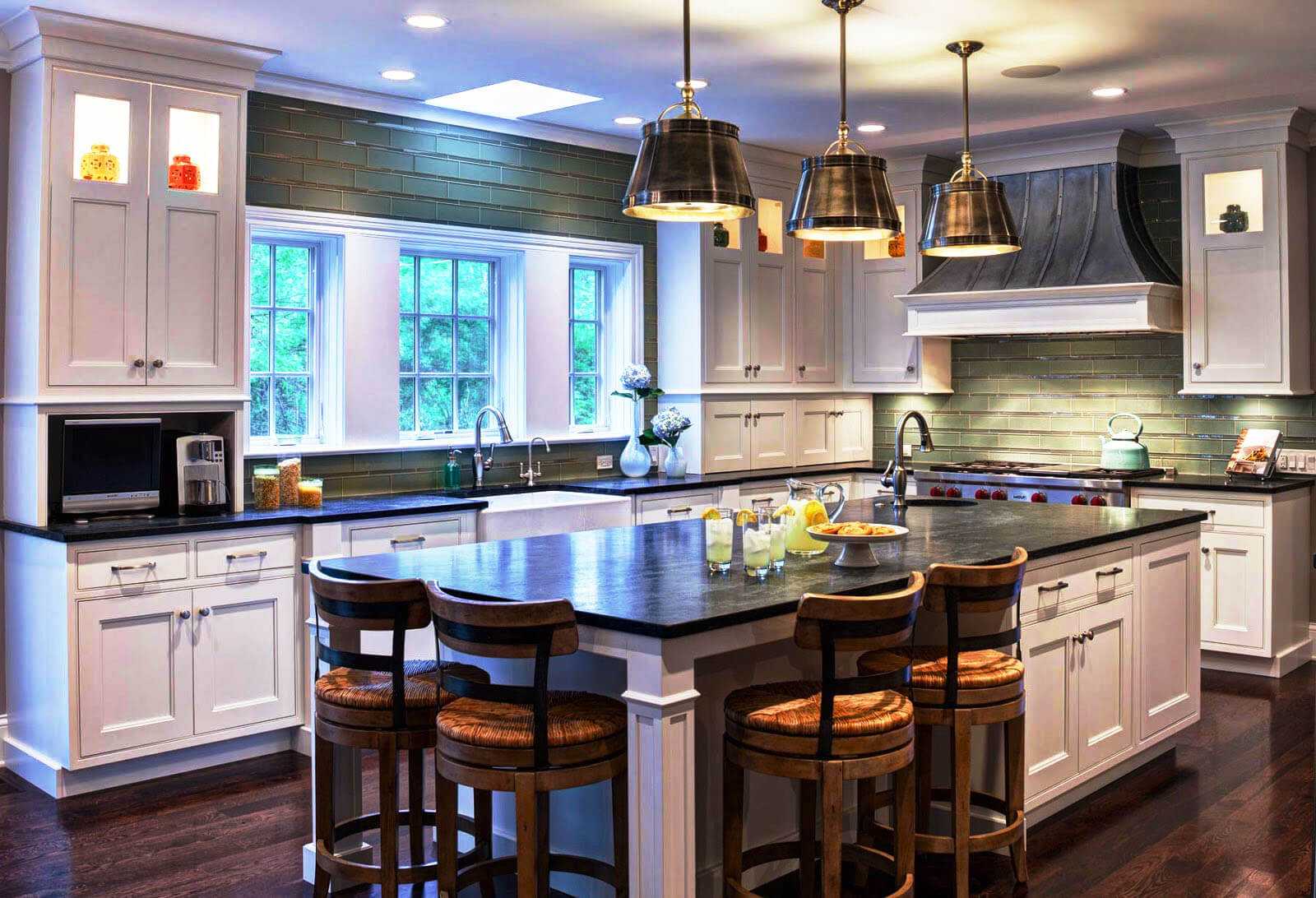 Обратите внимание: Согласно дизайнерским стандартам он должен по форме повторять конфигурацию комнаты. То есть квадратный для квадратной и прямоугольный для вытянутой. Кухня в стиле американской классики со стационарным островом – это не только модно, но и практично