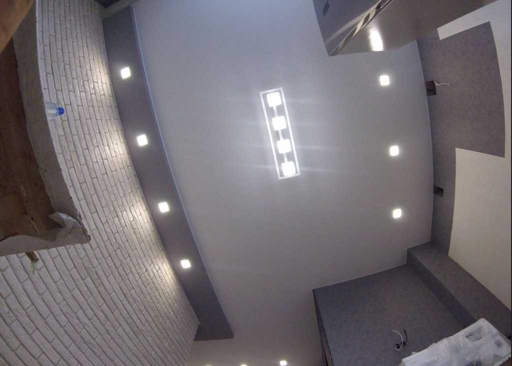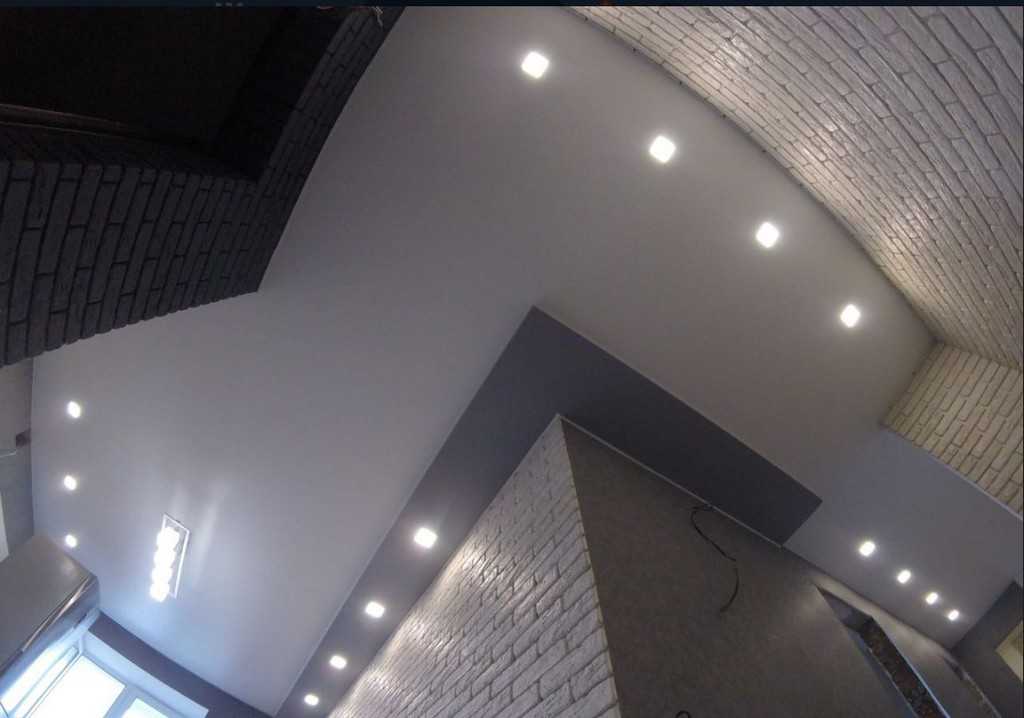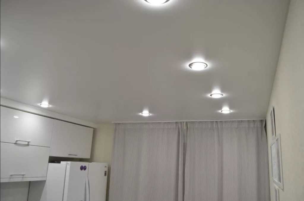 Пожалуй, самый популярный вид осветительных приборов. Их количество на натяжном потолке напрямую зависит от площади кухни, а также наличия или отсутствия центральной люстры.