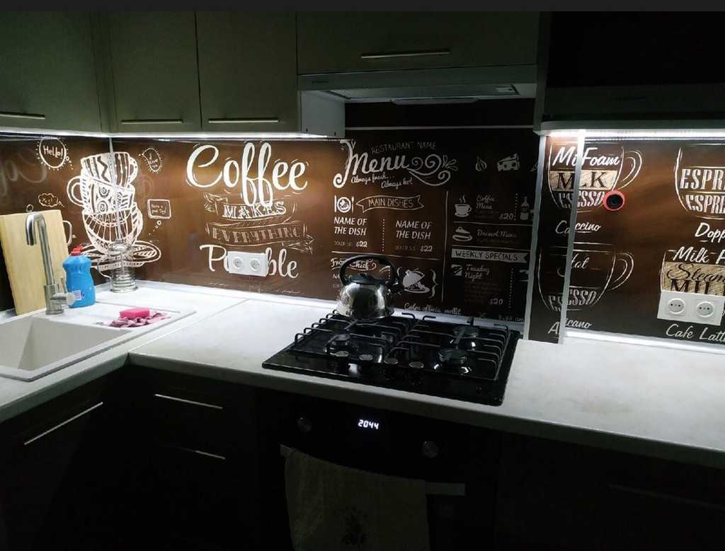 Для этого на основании подвесных шкафчиков монтируются специальные галогенные либо светодиодные лампы. Они дают красивое и стройное свечение, вполне достаточное для того, чтобы подсветить все ключевые моменты рабочей зоны.
