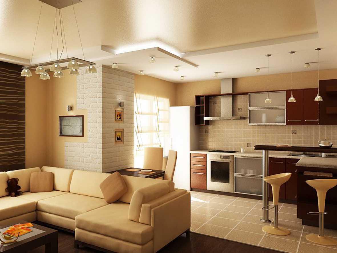 Свет в кухне, совмещенной с гостиной, играет важную роль