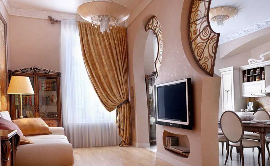 Арочный проем тоже должен четко соответствовать выбранной стилистике помещения.