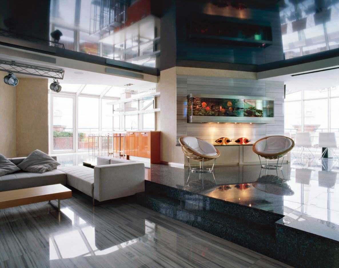 - Глянцевую с большой способностью к отражению. Комната кажется более высокой.