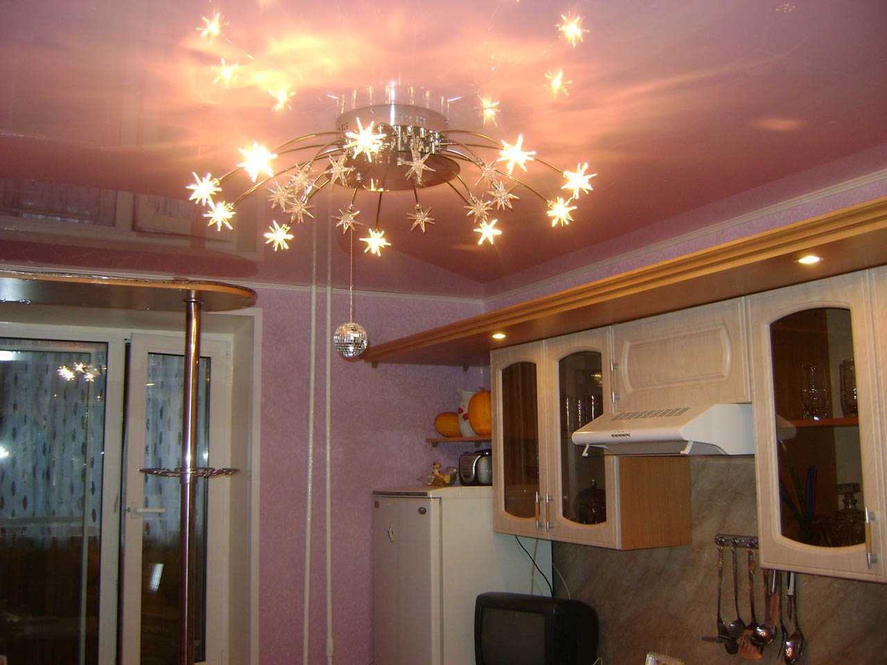 При использовании натяжных потолков большое значение имеет подсветка. С её помощью достигают эффекта мерцания, мягких бликов и подчеркивают контрастность цветов.