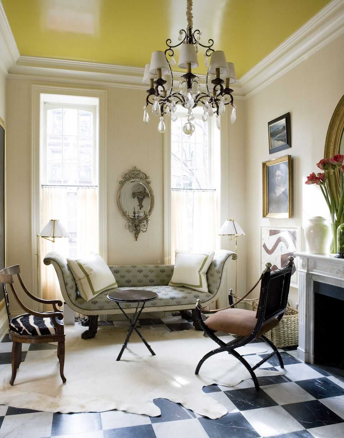 Кроме перечисленных вариантов сочетаний встречаются и другие. Например, круг, овал, прямоугольник или более сложная фигура в центре потолка.