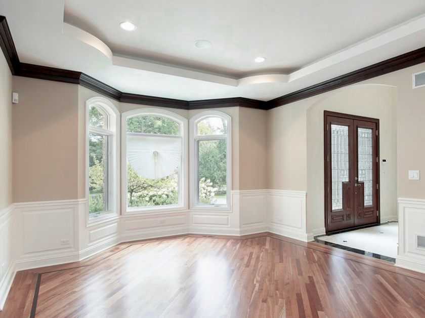 В средних и крупных комнатах стоит использовать контрастирующие расцветки, чтобы подчеркивать геометрические свойства комнат и визуально разбить территорию на зоны.