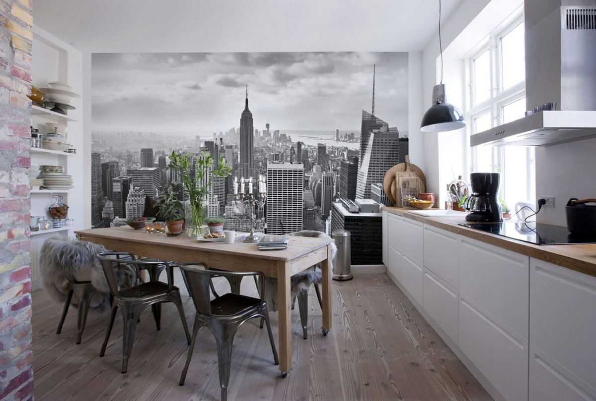 Поскольку в наше время для обустройства кухни можно использовать множество стилевых направлений, то и дизайн обоев, если вы предполагаете их использование, может быть абсолютно любым. Это могут быть идеально гладкие, похожие на бумагу полотна или изделия с рельефной и шероховатой поверхностью. Обои с волокнистым покрытием и переливающимся на свету рисунком. А также полотна с металлизированным покрытием, всевозможным теснением и матовые обои.