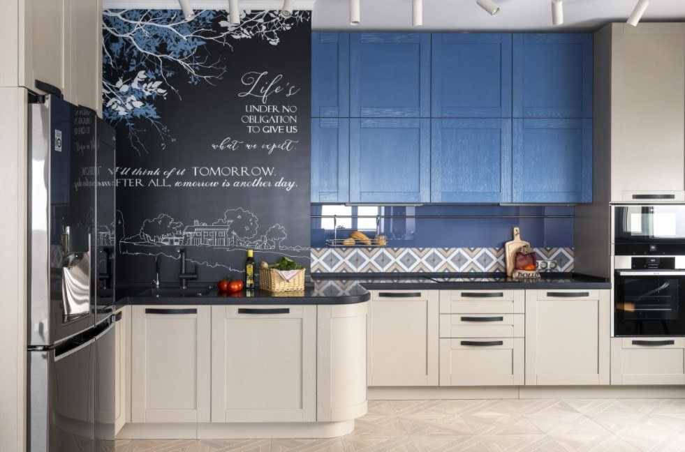 Также следует учитывать размеры кухни и общую стилистику интерьера. Нейтральные белый, серый и чёрный цвета принято использовать в сочетании с другими оттенками. Пастельная палитра наполнит помещение свежестью и лёгкостью. Натуральные бежевые, древесные и молочные оттенки актуально использовать в качестве фона.