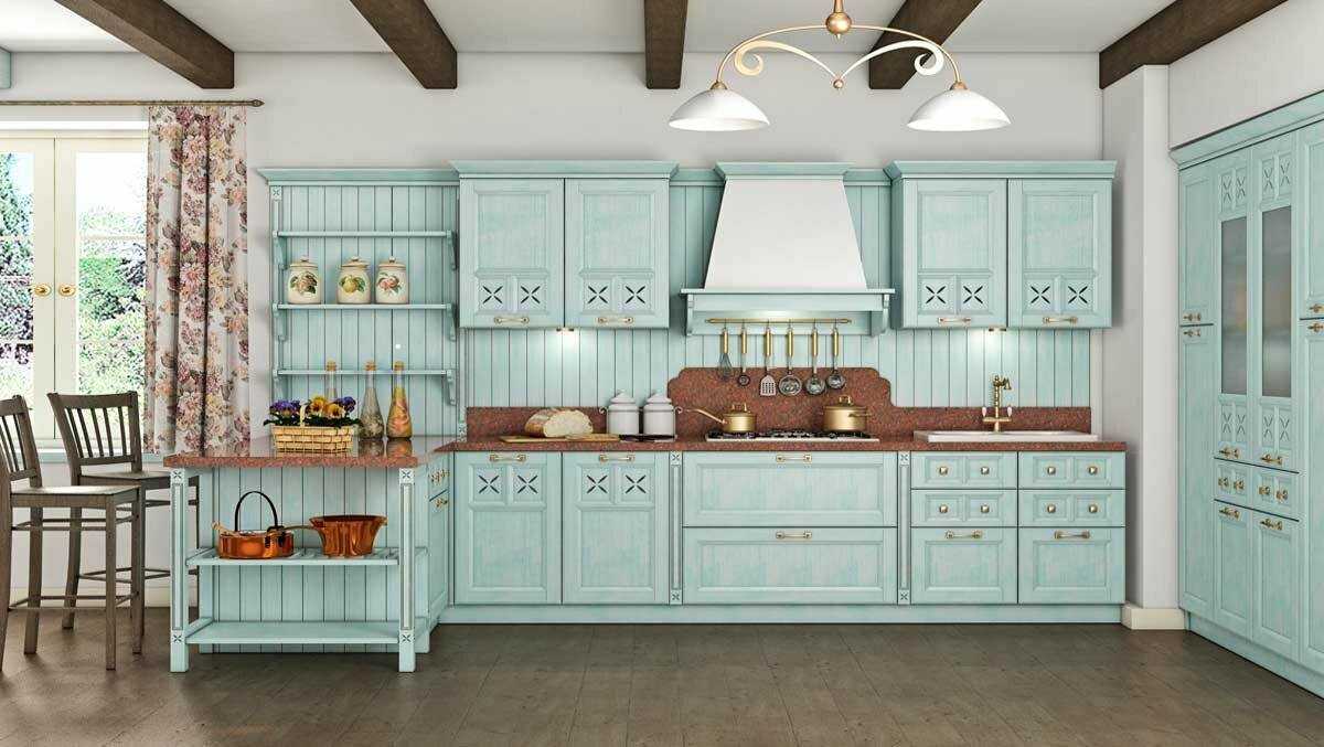Мебель — одна из главных составляющих удачного интерьера кухни в стиле прованс. Чаще всего это натуральное дерево, которое специально состаривается с помощью патины или кракелюра.