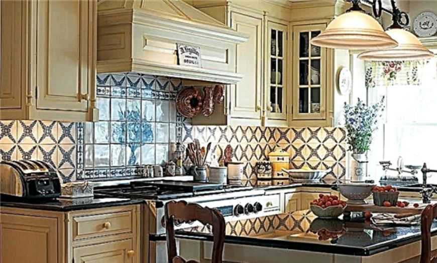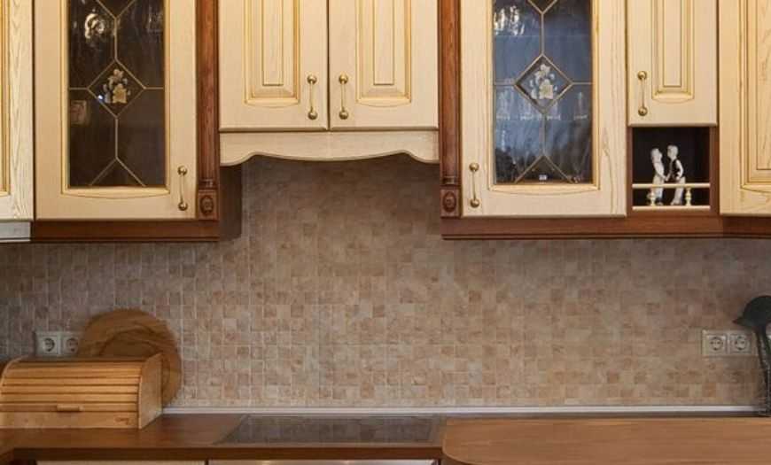 Бежевая прессованная плитка на кухне в стиле классикИсточник expertvybor.ru